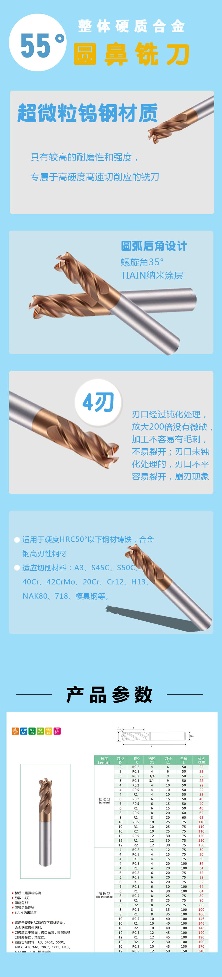 55°整體硬質(zhì)合金圓鼻銑刀