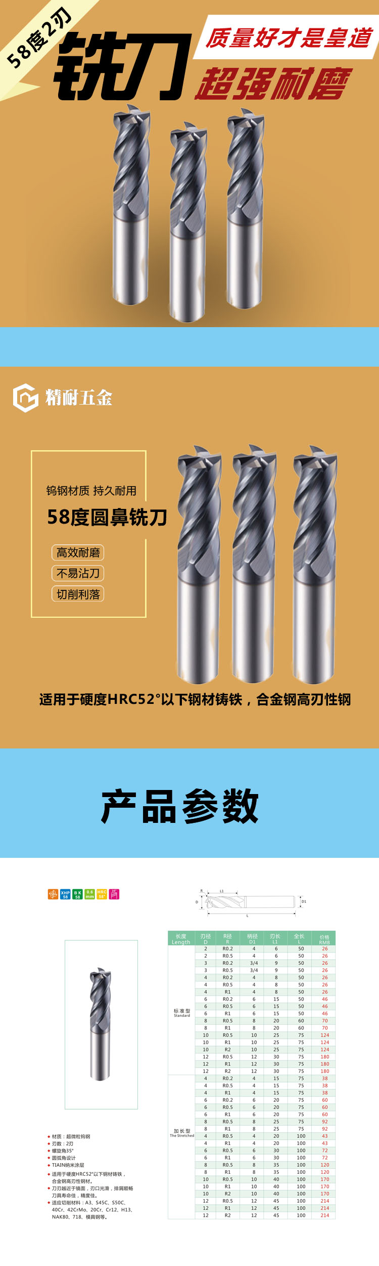 58°整體硬質(zhì)合金圓鼻銑刀